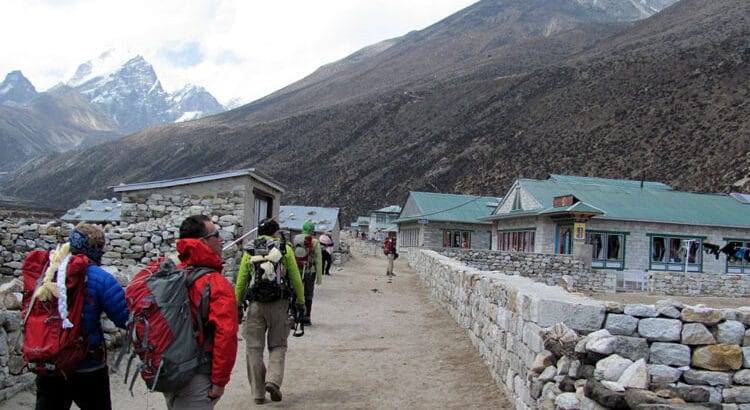 Jour 9: Trek jusqu’à Periche (4370m) et notre lodge 5 étoiles. Une clinique médicale de haute altitude est disponible pour ceux qui veulent consulter.