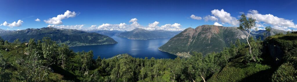 Poursuivez votre voyage en bateau jusqu’au paisible village d’Ulvik, entouré d’arbres fruitiers et de collines ondulantes. Explorez le paysage idyllique, visitez les fermes cidricoles locales et prenez le temps de vous imprégner de la paix et de la tranquillité de ce joyau caché le long du fjord.